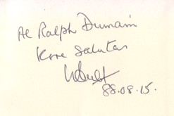 Mi ankaŭ korespondis kun li kelkfoje en la 1980aj kaj la fruaj 1990aj jaroj, pri beletro, kulturo, politiko, sekulara humanismo, kaj historio de Esperanto. Li esprimis pesimismon pri la aktuala politika situacio, sed lia humanisma sinteno neniam ŝancelis.